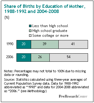 - Education: Most mothers of newborns (54%) had at least some college education in 2006, an increase from 41% in 1990. Among mothers of newborns who were ages 35 and older, 71% had at least some college education.