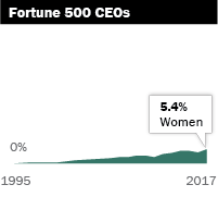 Note: Prior to 2017, based on the percentage of women CEOs at the time of the annual published Fortune 500 list. For 2017, share is as of the end of the first quarter.