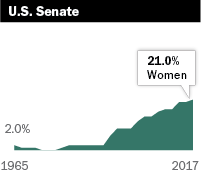 Note: Shows the share of female senators at the outset of each term of Congress.